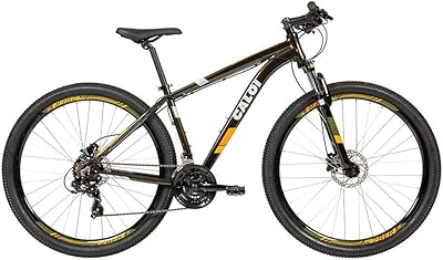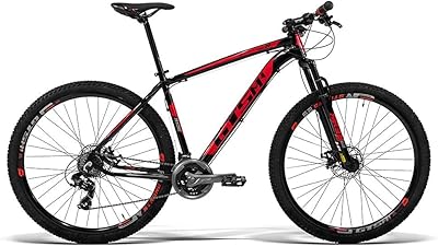 O aro 29 da roda garante um excelente diâmetro e uma boa sustentação para as trilhas. Além disso, o pneu cravejado ajuda a bike a ter mais tração e evita que ela escorregue, garantindo um caminho mais seguro e estável até mesmo em descidas. Esse modelo ainda conta com suspensão dianteira e pode alcançar até 24 velocidades, o que permite um desempenho maior em diversos tipos de terrenos.