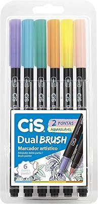 Os marcadores artísticos DualBrush da CIS são a opção perfeita para quem gosta de pintar e procura cores diferentes, versatilidade e tudo isso por um bom custo-benefício. As canetas vem em um kit de 6 cores pastéis, garantindo uma boa variedade de cores aos seus desenhos. Além disso, possuem pontas duplas: de um lado uma ponta pincel, ideal para colorir, e do outro, uma ponta ogiva, ideal para desenhar e fazer contornos.