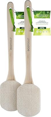 Essa escova de banho da EcoTools, foi projetada e é indicada exclusivamente para quem quer dar uma atenção às costas, com uma bucha natural cortada à mão, possui uma alça ergonômica para melhor controle enquanto limpa e esfolia. Muito boa para áreas difíceis de alcançar como costas e pernas. Possui uma grande bucha que se expande quando molhada, deixando sua pele mais confortável com o contato.